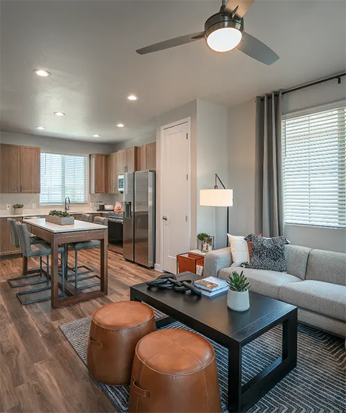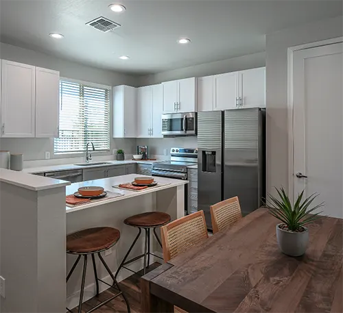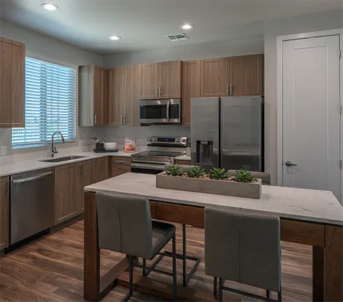 At Village at The BLVD, we believe your home should reflect your lifestyle. Choose from our spacious 1, 2, and 3 bedroom layouts, each crafted for modern living with expansive living areas, gourmet kitchens, luxurious bathrooms, and bright, airy bedrooms. Prefer outdoor relaxation? Every home features a private backyard for your enjoyment. Here, you’ll find the perfect balance of comfort and convenience.